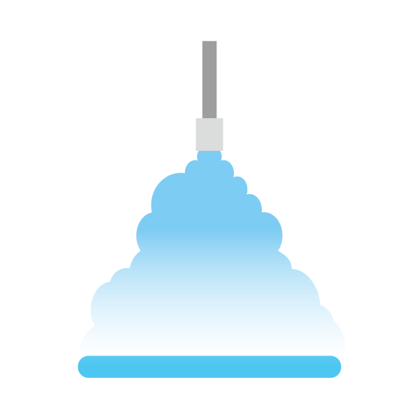 Because the mist sprayed by a two-fluid nozzle consists of very fine droplets, it can penetrate holes and small gaps. With the assistance of air, the cleaning performance is considered to have improved.